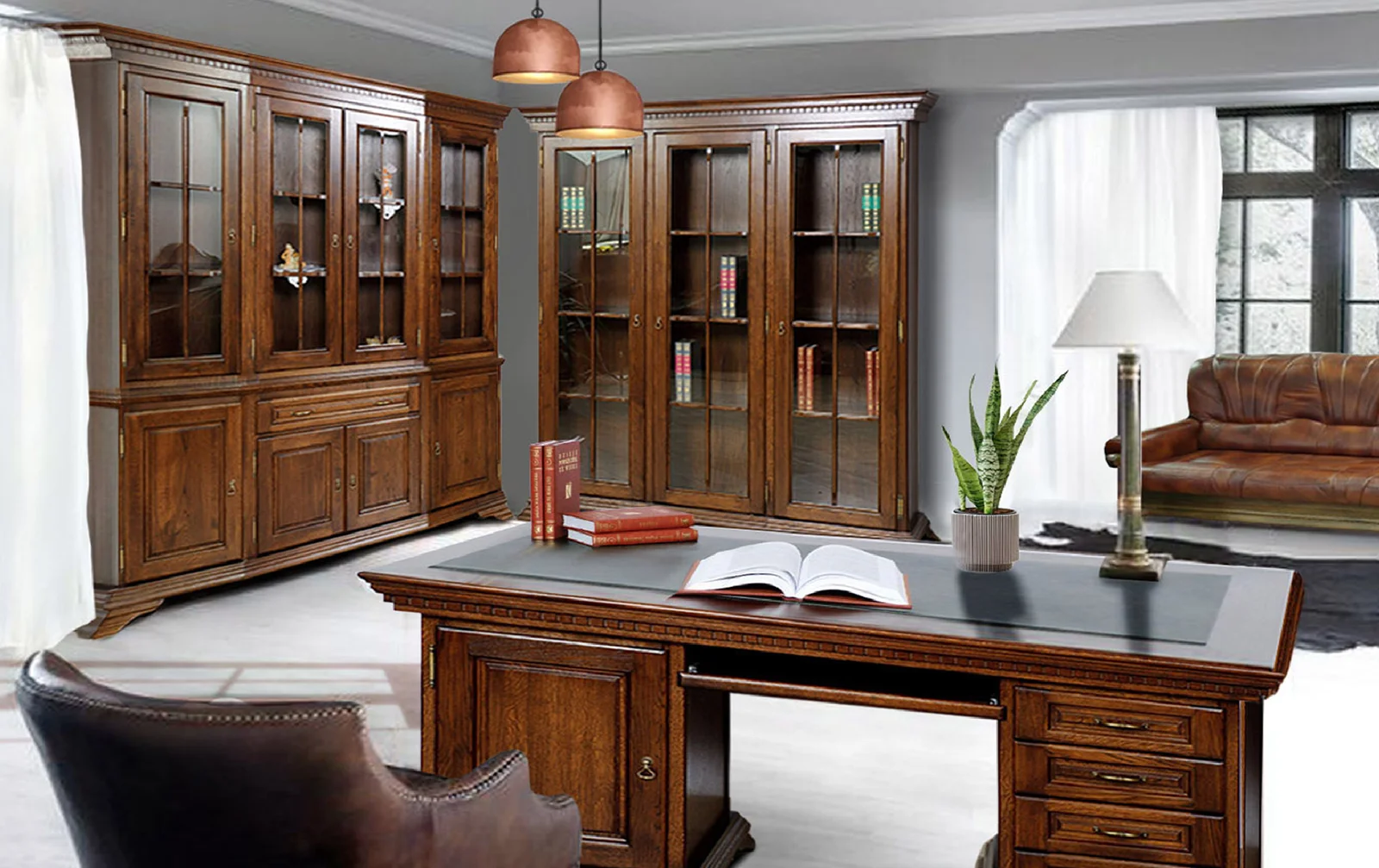 Please visit us in our office in Southampton to see our furniture, the pallet of available wood stains colors and the leather and fabric samples or order the samples to be sent to you.