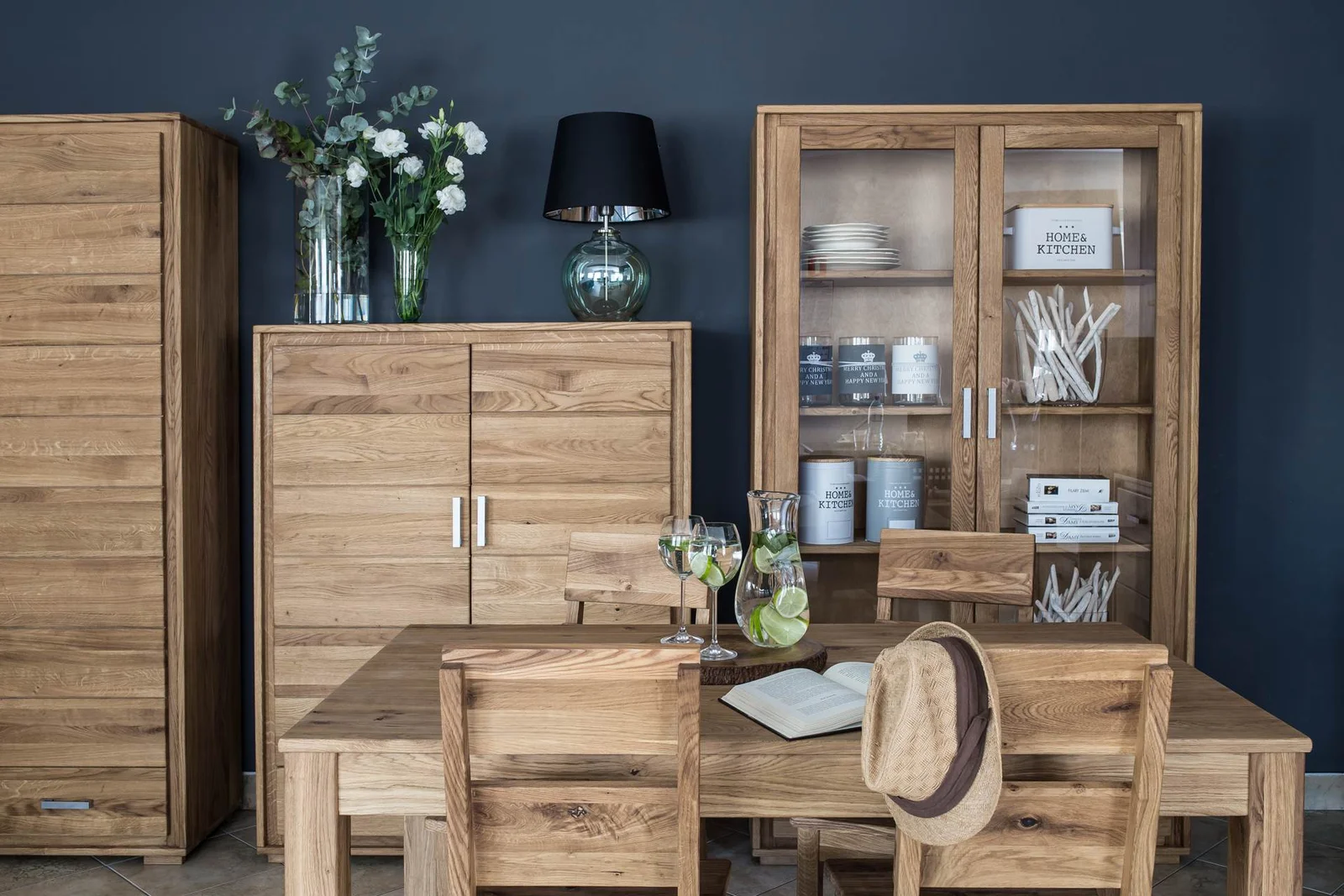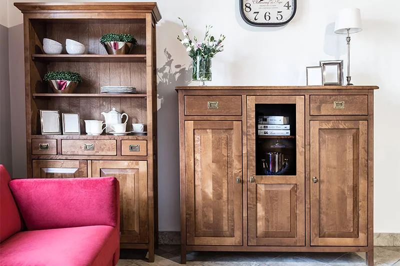Almost all our collections have all the fronts, frames, legs, corner pillars and the sides made of solid wood. This can be oak, beech, willow, spruce or fir.